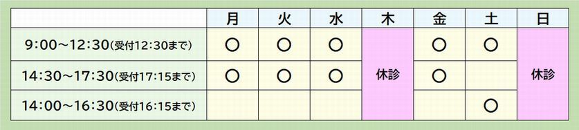 | 休診日 | 木・日曜・祝日・第二土曜 |